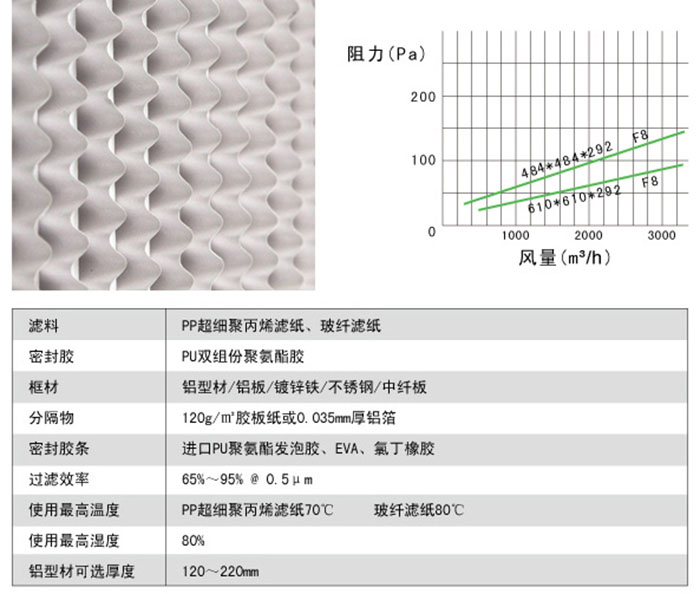 有隔板中效過濾器性能特點: